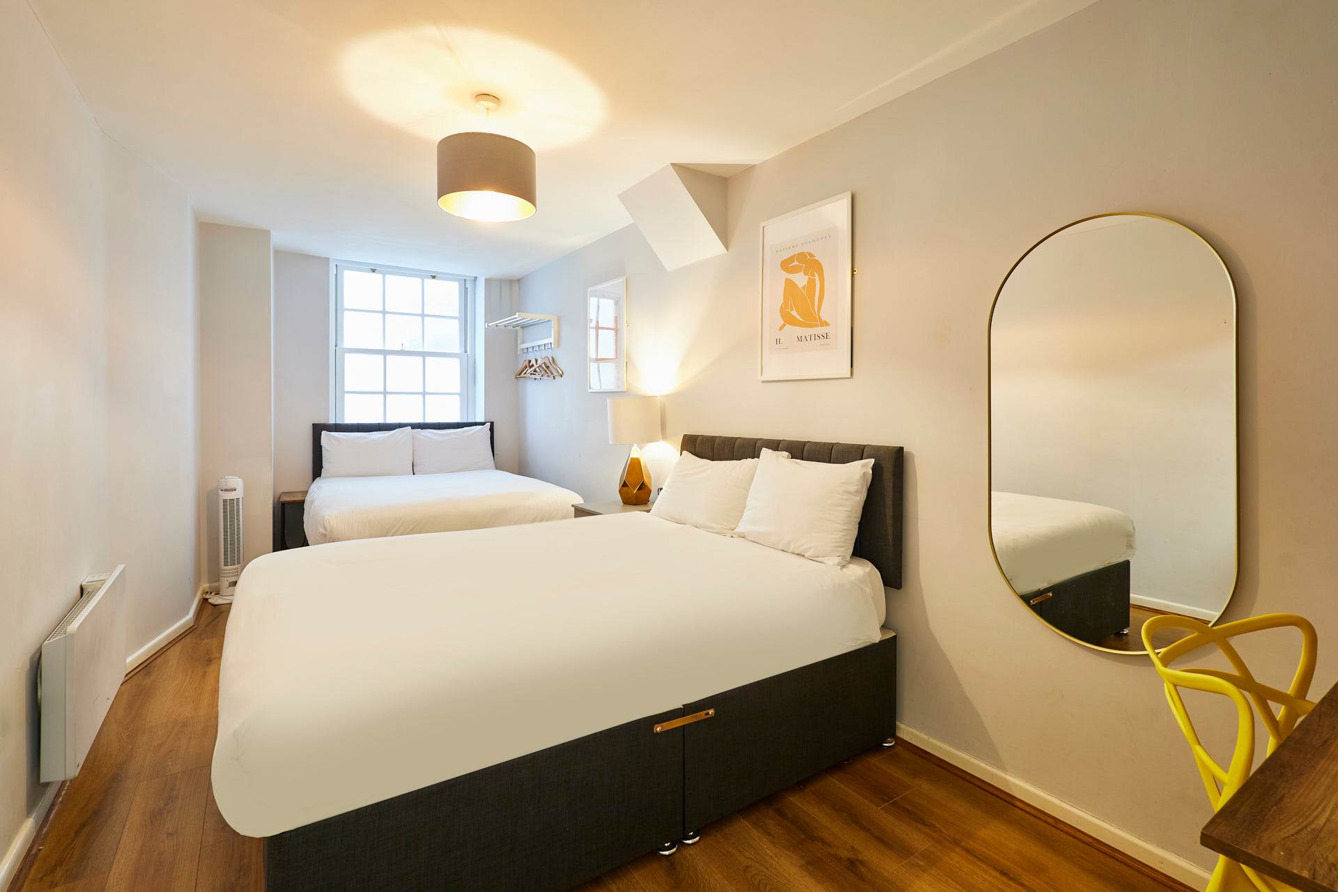 Step into Apartment 10, Stanley Street a contemporary and inviting retreat located in the vibrant heart of Liverpool. This thoughtfully designed apartment offers a bright and airy space where modern comfort meets stylish city living, making it the perfect base for your stay. The open-plan living, dining, and kitchen area provides a welcoming setting to relax after a day exploring the city whether you’re watching your favourite show on the flat-screen TV, enjoying a quiet read, or sharing a meal with family or friends. The dining area, filled with natural light from large windows, is ideal for breakfasts, coffee, or relaxed dinners, while the fully equipped kitchen includes everything you need for your stay dishwasher, fridge, freezer, oven, hob, microwave, kettle, and toaster making cooking easy and convenient. At night, retreat to the peaceful bedroom featuring two double beds, soft linens, and soothing décor. Blinds have been fitted to ensure a restful night’s sleep, and generous storage makes it simple to feel settled and at home. Stylish, comfortable, and perfectly positioned, Apartment 10 on Stanley Street offers a modern city escape where convenience, design, and the energy of Liverpool come together an ideal home-away-from-home for your urban adventure.