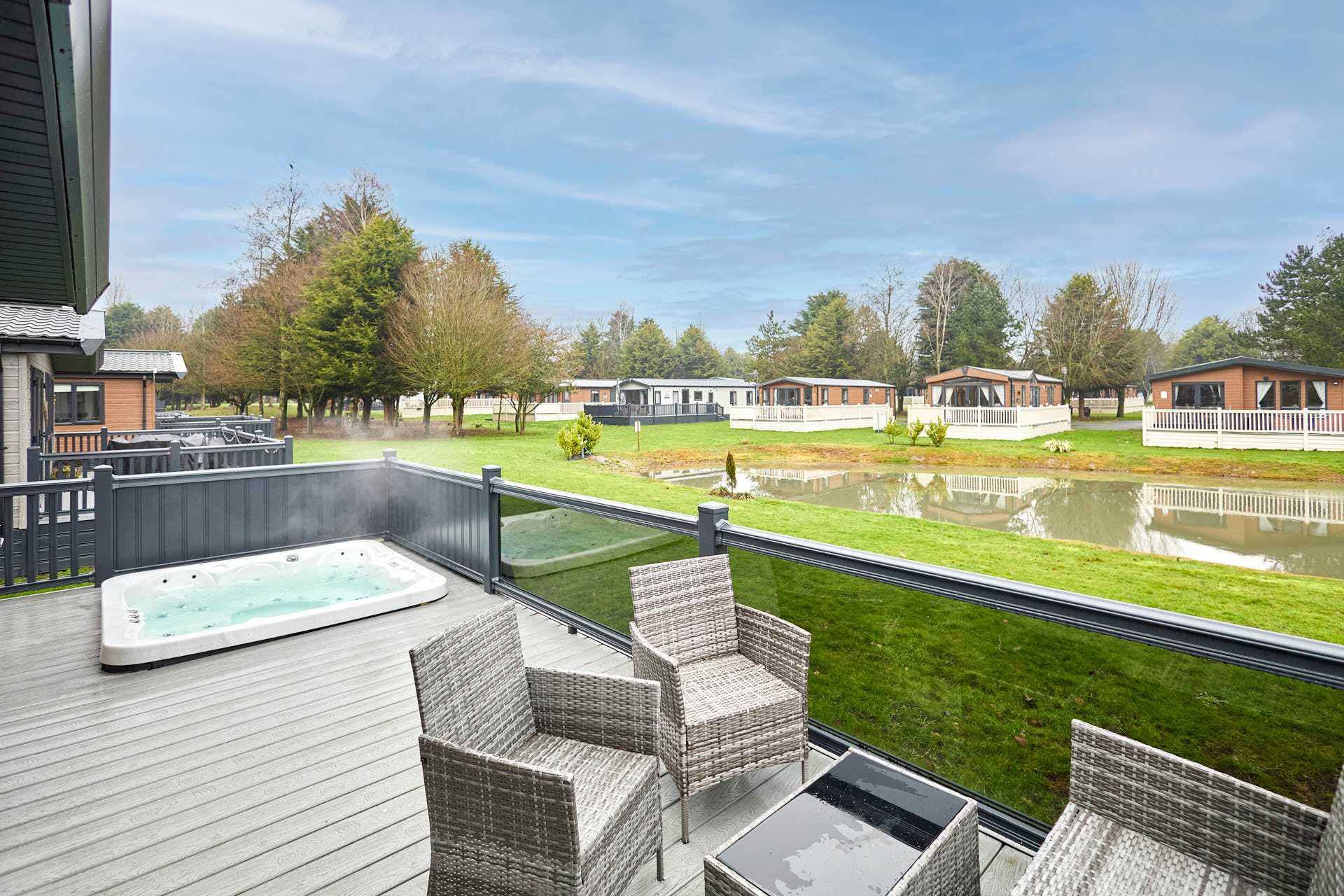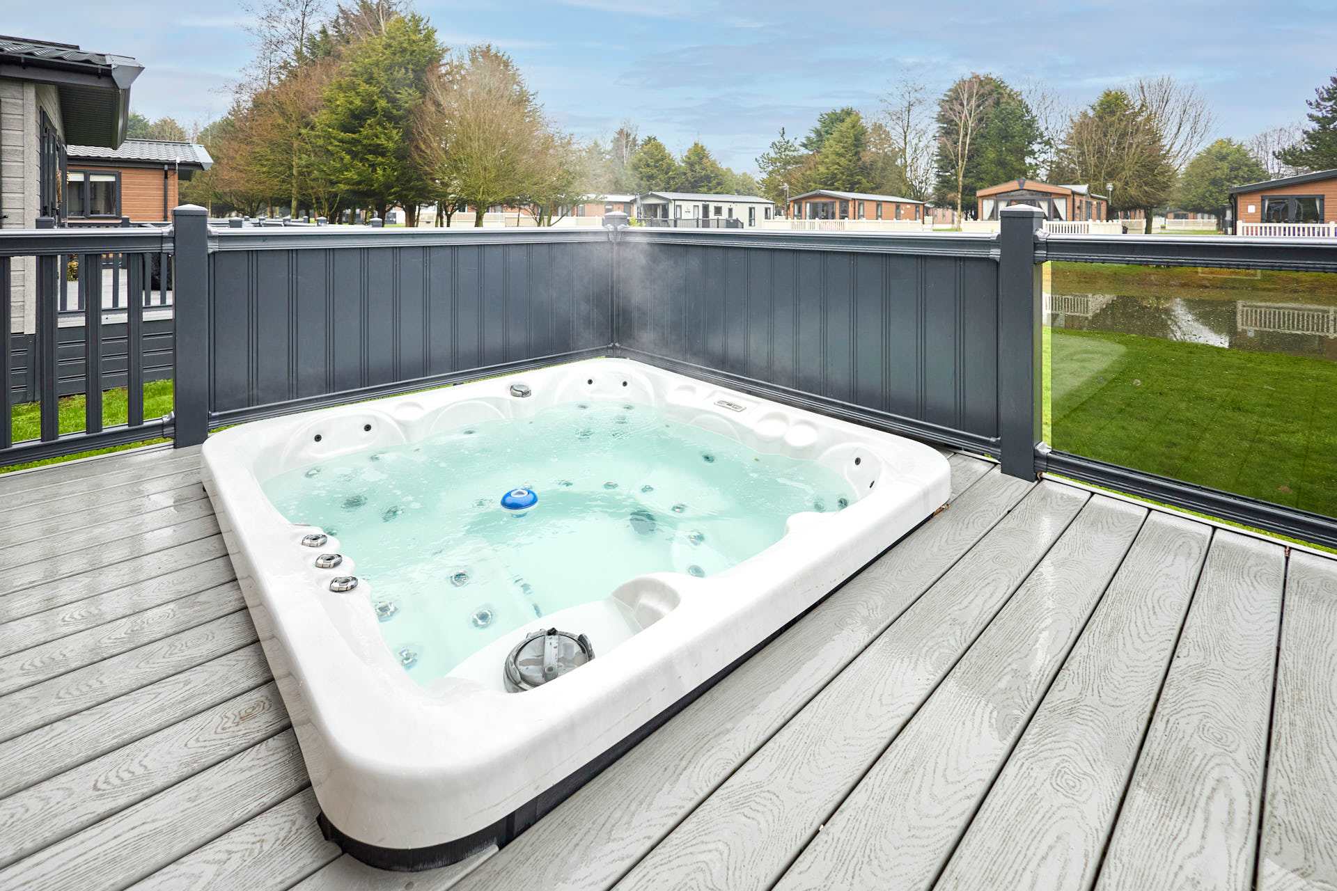 Guests will have access to their lodge from 4pm on their arrival date. Our on-site team will be on hand to support your check in and ensure you have everything you need for your stay. Please note that there is one parking space to the side of each lodge, this is to be used by one vehicle only. All other vehicles can drive to the lodge to drop-off luggage but must park their car in the main car park for the duration of their stay. There is strictly no parking on the grass at any times. Quiet times are between the hours of 10pm and 7am and we politely ask that you respect your neighbours when using the outdoor facilities during these hours to ensure everyone has an enjoyable time when staying with us. Please note that the park is Dog Friendly but we ask that all dogs are kept on a lead at all times when on the park site. All guests can make use of the additional facilities at the Lodge Park. These include JJ's Bar & Grill, a Take-away Pizza Shack, 9 Hole Golf Course, Driving Range and Children's Play Park