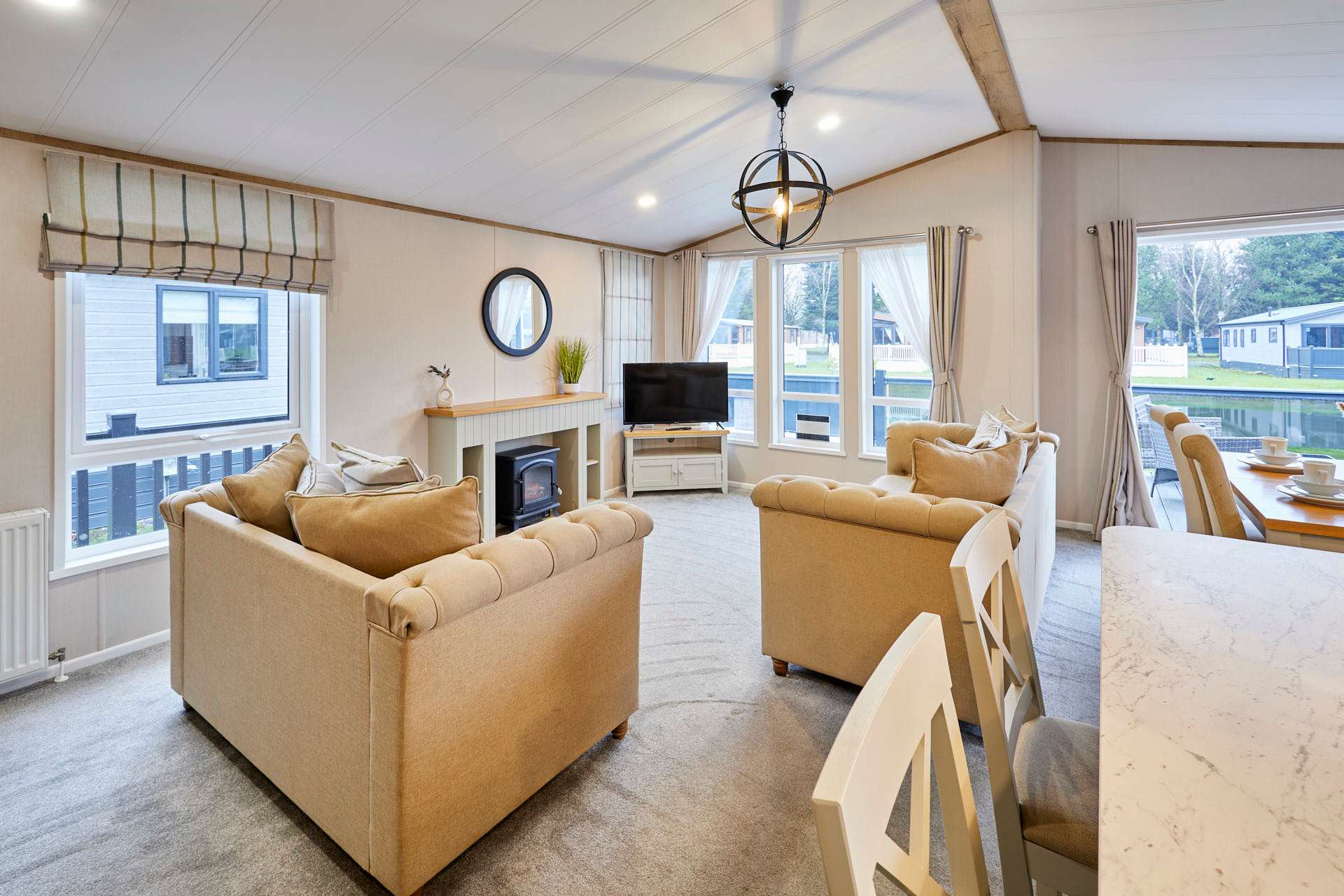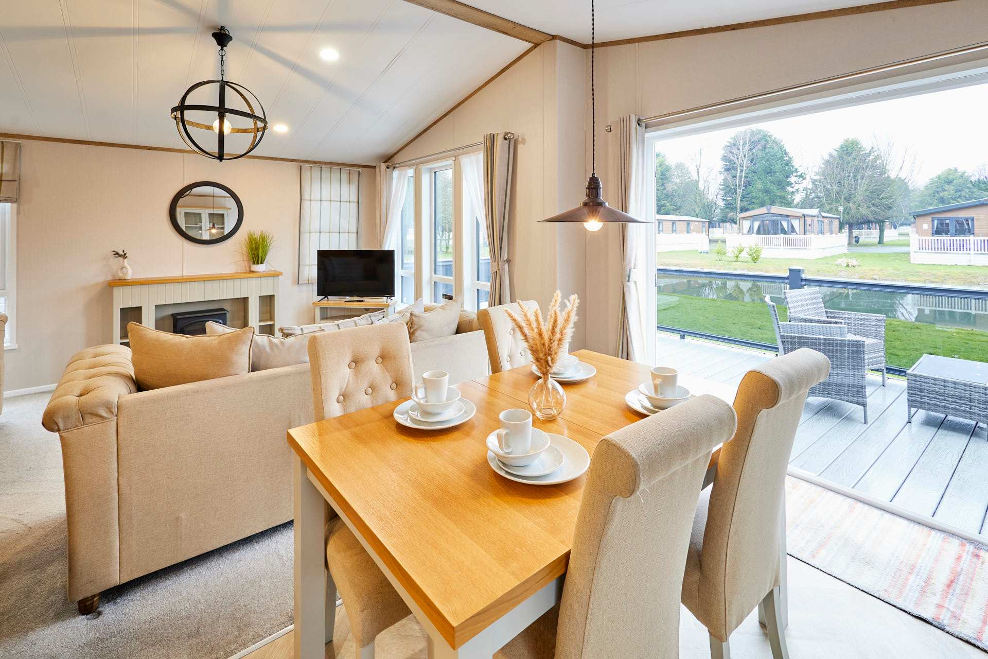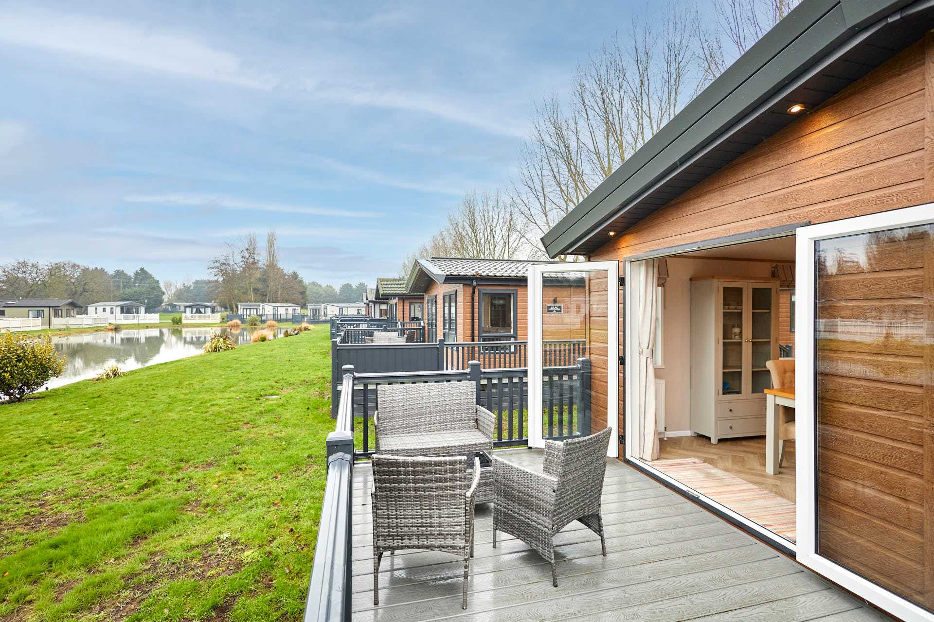 This charming lodge offers two comfortable bedrooms and two modern bathrooms, perfect for couples, families, or small groups. The bright open-plan living area features a cozy lounge, dining space, and fully equipped kitchen. Large windows fill the space with natural light and provide tranquil countryside views. Ideal for short breaks or longer stays, with easy access to local shops, scenic walks, and transport links to York and the Yorkshire Wolds.