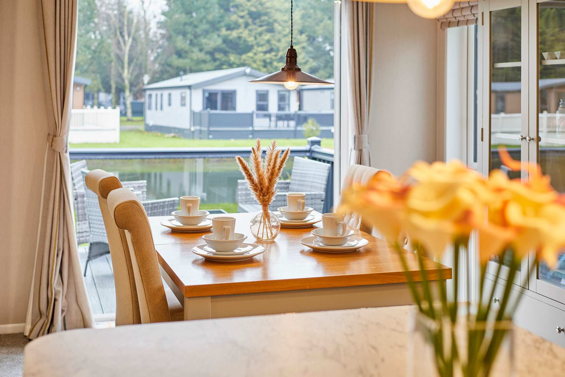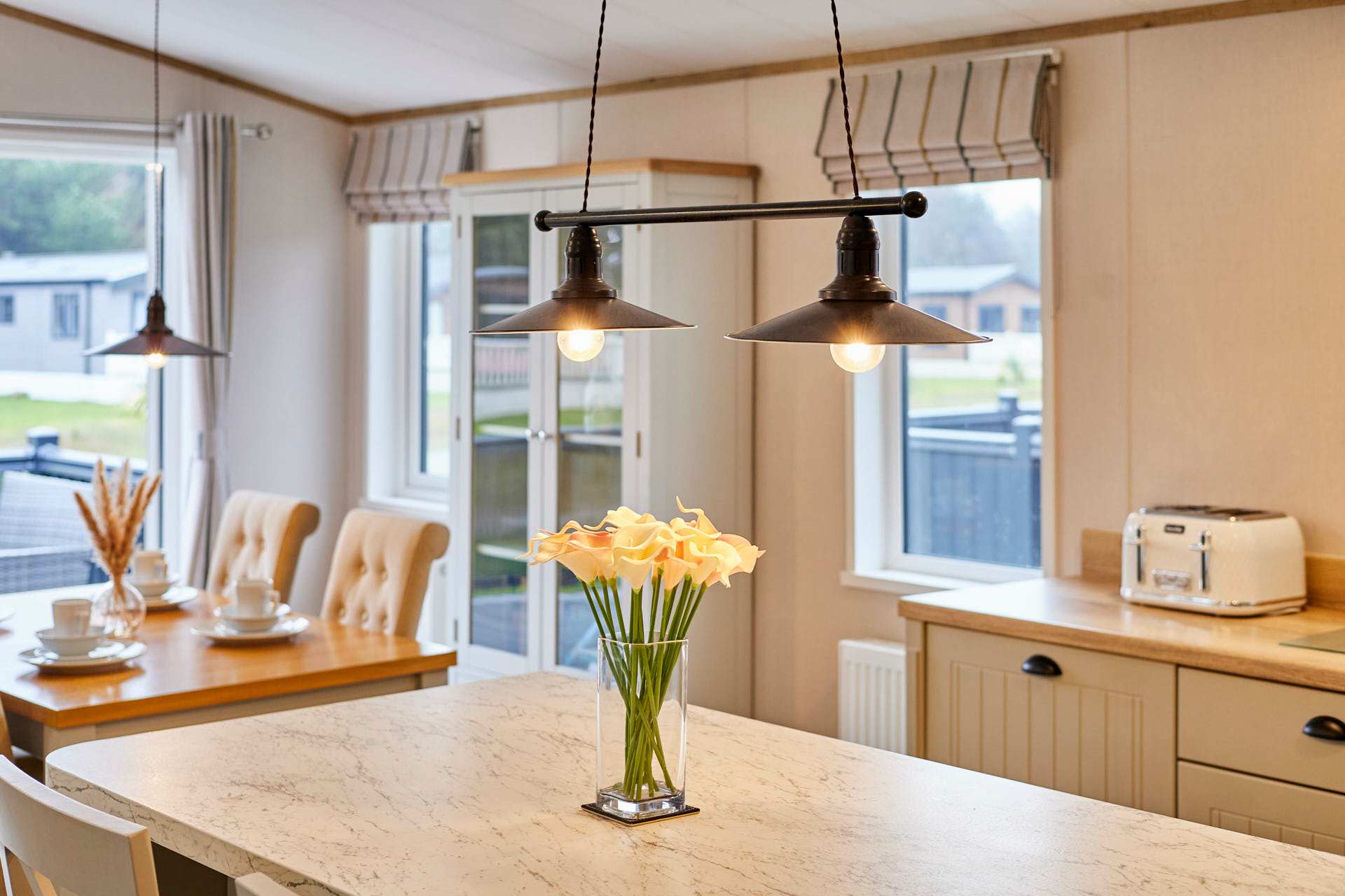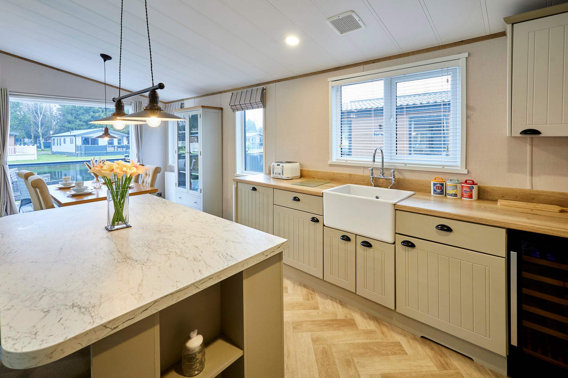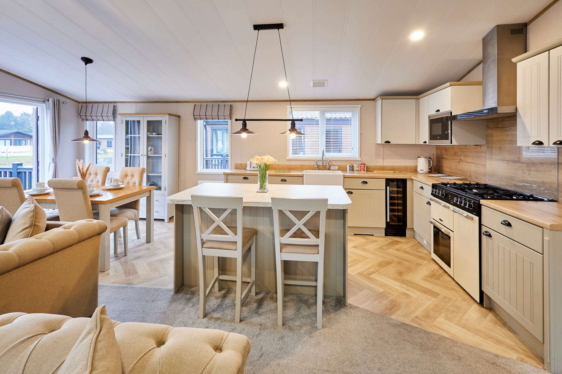 This charming lodge offers two comfortable bedrooms and two modern bathrooms, perfect for couples, families, or small groups. The bright open-plan living area features a cozy lounge, dining space, and fully equipped kitchen. Large windows fill the space with natural light and provide tranquil countryside views. Ideal for short breaks or longer stays, with easy access to local shops, scenic walks, and transport links to York and the Yorkshire Wolds.